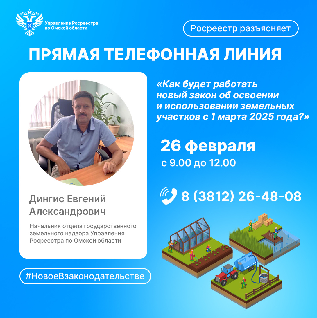 В омском Росреестре состоится прямая линия о новых правилах и сроках освоения и использования земельных участков с 1 марта 2025 года