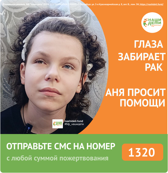 С 2 лет рак отбирает глаза и жизнь Анюты. После долгого лечения крохи онкология отступила. Но спустя 5 лет вернулась снова в более агрессивной форме с угрозой роста в головной мозг. Чтобы своевременно обнаружить рецидив, Ане необходимо проходить ежемесячное обследование в клинике Швейцарии. Только высокоточное оборудование этой клиники с мировым именем может обнаружить любое изменение сетчатки. Оплачивать дорогостоящие поездки одинокая мама не в силах. На лечение нужны огромные суммы, пропуск хотя бы одного обследования грозит Ане летальным исходом. Уже больше года после второго рецидива Аня спасает зрение и жизнь. Ремиссии ещё нет, и последующее лечение жизненно необходимо. Но с каждым приёмом денег становится всё меньше, а сбор идёт очень медленно. Все усилия могут быть перечёркнуты всего одним пропущенным осмотром. Помогите Анечке! Ремиссия может быть упущена! РАК сетчатки обоих глаз. Малышкой Анюта столкнулась с опасностью потерять не только глаза, но и жизнь. Спасти девочку от уда