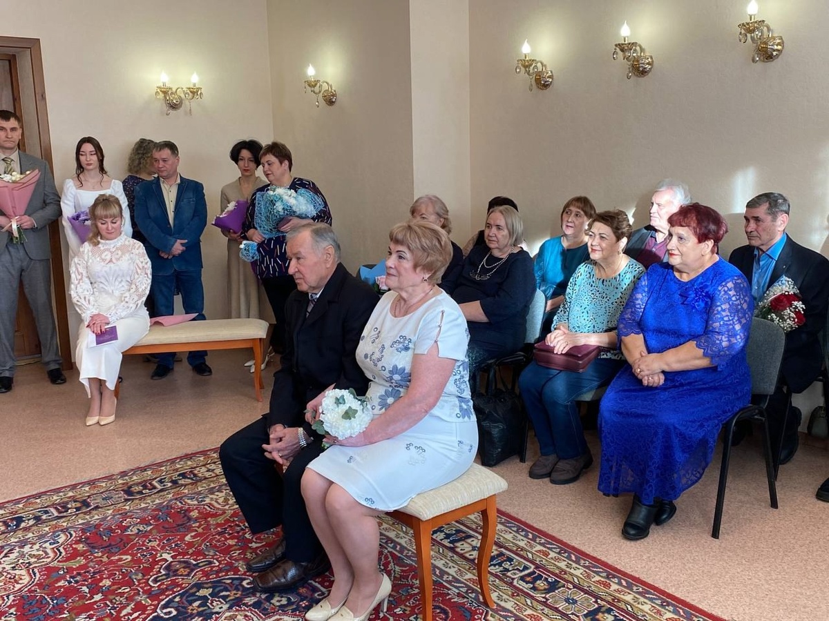 Нарядные гости, цветы и лепестки роз – почти также как полвека назад, слегка волнуясь, супруги Петровы входят в зал бракосочетаний. Судьба подарила шанс вновь почувствовать себя молодоженами. Зинаида Васильевна и Валерий Степанович, взявшись за руки, словно перенеслись на 50 лет назад, в тот день своей свадьбы, когда они, юные и влюбленные, впервые поставили свои подписи, обменялись кольцами, и конечно как у настоящих молодоженов не обошлось без танца. Супруги медленно кружились в центре зала, их взгляды были наполнены любовью, нежностью и счастьем. Зинаида Васильевна и Валерий Степанович Петровы оба родились и выросли в Назарово. Познакомились они, когда стали взрослыми. Зинаида Васильевна в то время училась в педагогическом университете в городе Красноярске, а Валерий Степанович служил в армии. Будущие супруги в один прекрасный вечер случайно встретили друг друга. И с того момента началась их семейная история. С тех пор на протяжение 50 лет идут по жизни рука оброку. Вырастили дочь и