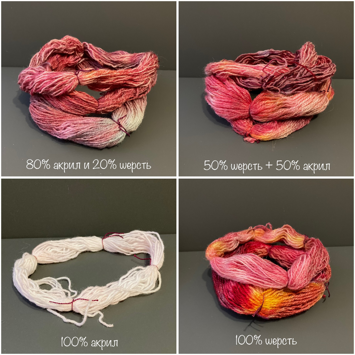 Что стало с пряжей после окрашивания разных составов!