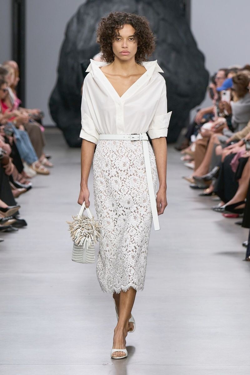 Коллекция Майкла Корса на весну-лето 2025 предлагает прямые юбки с разрезом, которые станут символом элегантности и изысканности. Эти юбки можно носить как в офисе, так и в неформальной обстановке, выбирая ткань в соответствии с выбранным стилем.