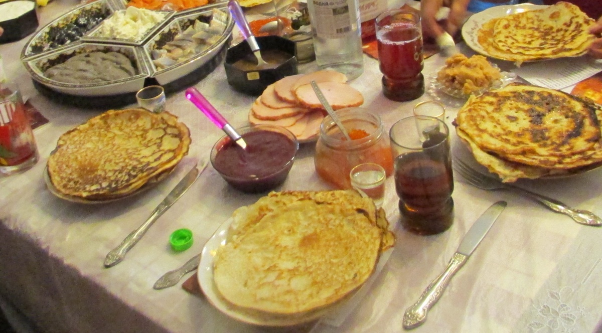Вторая история связана с тем, что, идя в гости, надо точно знать какие блины готовят в той семье: тонкие или нет. Потому что на вопрос "Сколько вам сразу положить?" обычно отвечаешь: "ну давайте штук пять"... И было дело однажды после этой фразы. Долго пыталась расшифровать недоумённо-удивлённый взгляд хозяйки дома... даже уважительный, что ли... и далее с тихим ужасом я обозревала тарелку, на которой вальяжно возлежали пять - да, их было пять! - толстенных жирных блинов, таких широких по толщине, что их в прямом смысле надо было кусать. Всё, провал операции. Мгновенная потеря лица, которое бы и так вскоре перестало быть интеллигентно-нейтральным, но все маски спадают в самом начале. А, да, и дурой себя чувствуешь тоже прямо сразу! Вот поэтому надо уточнять )))