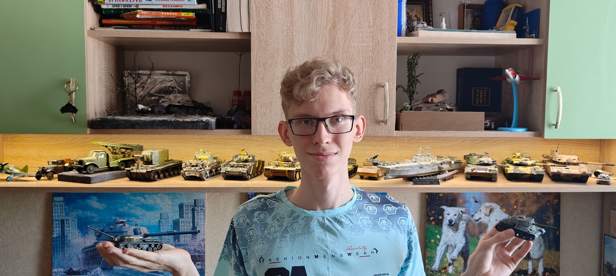 2025 год объявлен Годом защитника Отечества. Мы отмечаем 80-летие Победы в Великой Отечественной войне и особое внимание уделяем военной истории, подвигам героев и сохранению памяти о них. Одним из необычных способов прикоснуться к героическим страницам истории стал моделизм - хобби, которым на протяжении семи лет увлекается студент третьего курса факультета информационных систем и технологий Анатолий Кузнецов. Собирая и раскрашивая миниатюрные модели военной техники, он шаг за шагом воссоздает легендарные образцы. Всё началось неожиданно - с подарка на Новый год. Тогда Толе подарили модель российского танка Т-90 в масштабе 1/35. Обычный новогодний подарок оказался судьбоносным: именно с него и началось увлечение, которое со временем стало неотъемлемой частью его жизни. «Мне очень понравилось собирать мелкие детали, изучать каждую. После этого я уже сам купил набор Газ-АА и с тех пор моделизм стал моим основным увлечением», - рассказывает студент. Коллекция Анатолия насчитывает более