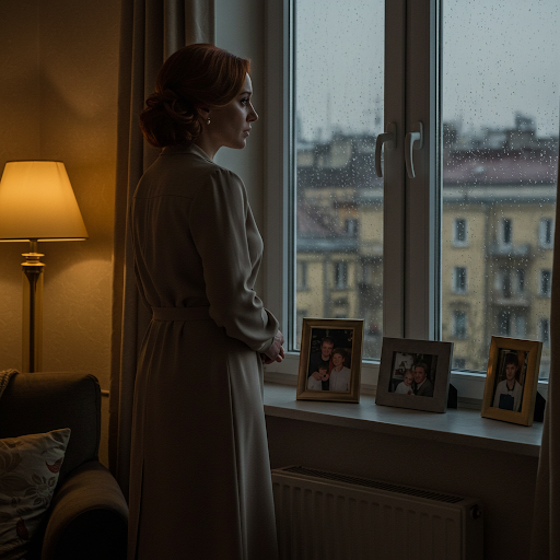 Марина стояла у окна, наблюдая, как осенний дождь размывает огни ночного города. Капли стекали по стеклу, словно слезы, отражая её внутреннее состояние. В её квартире, уютной и обставленной с безупречным вкусом, царила тишина. Мягкий свет торшера освещал фотографии на полке: счастливые лица детей, улыбающийся Андрей. Казалось, это жизнь идеальной домохозяйки.
