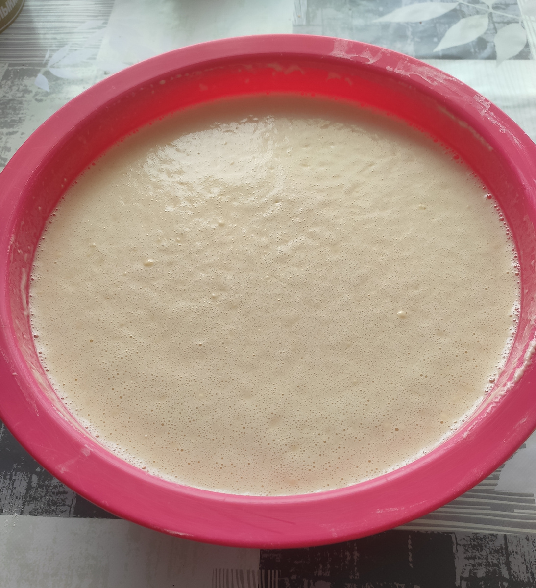 Все хорошо перемешиваем, чтобы не было комочков. Даём постоять часочек, пусть мука "разойдется".