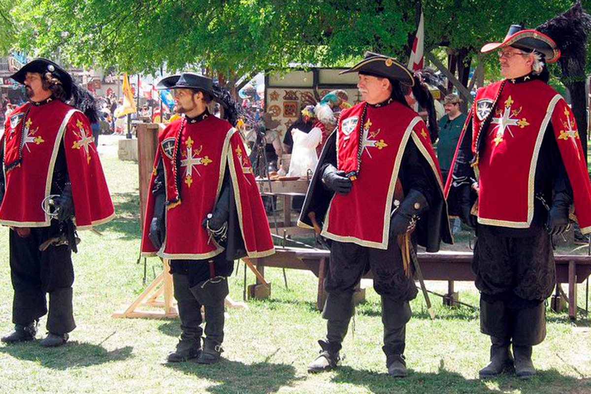 - Униформа: мушкетеры носили синие плащи с серебряными крестами, гвардейцы кардинала — алые плащи с вышитым крестом ордена Святого Духа