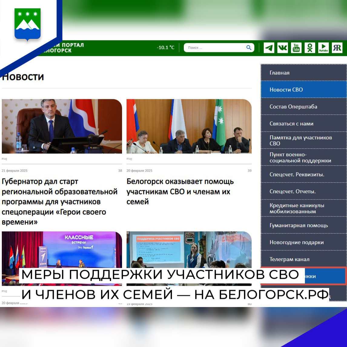 Меры поддержки участников СВО и членов их семей — на белогорск.рф