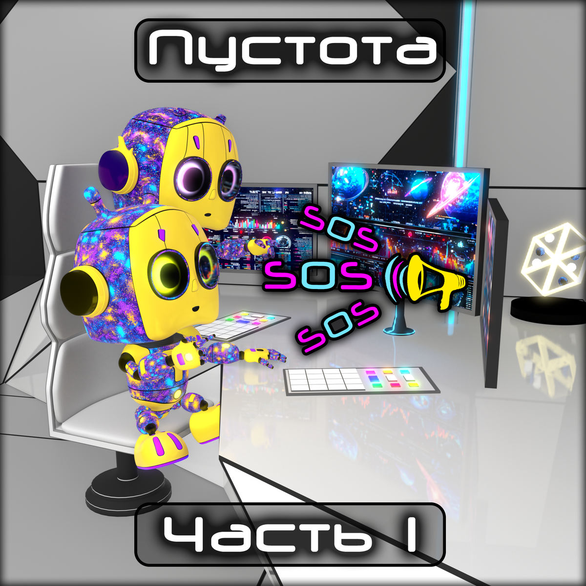 Сигнал бедствия из космического пространства: "Пшш... Мы одни... Пшш... Вокруг только пустота... Пип... Куда мы летим и где мы сейчас? Пшш... Никто нас не ищет... Пип... Никто нас не найдет... Пшш..." Этот повторяющийся сигнал заставляет содрогнуться. Кому-то нужна помощь. Наш корабль выполняет исследовательскую миссию. Наша цель - изучение далёких галактик. Тех уголков космоса, которые ещё ждут своего первооткрывателя. Но теперь наша цель изменилась. Сигнал бедствия, который мы поймали, стал нашим новым ориентиром. Этот сигнал исходит откуда-то из-за пределов известного нам пространства. Как будто кто-то пытается связаться с нами из самой глубины пустоты. На мостике царила напряжённая тишина. Роботы знали, что решение капитана будет судьбоносным. Если они последуют за сигналом, то есть риск встретить угрозу в бескрайней пустоте. Но если проигнорируют его, то навсегда останутся с чувством вины за тех, кто ждет помощи. Космос - это бесконечная тьма, в которой свет звёзд кажется лишь сла