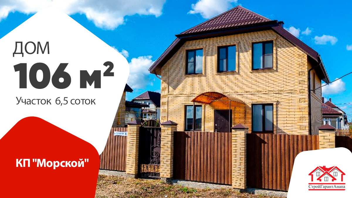 🏡Расположение - КП "Морской" ул. Солнечная д. 6 Площадь дома - 106 м² Участок - 6,5 соток Цена от СтройГарантАнапа - от 13 150 000 ₽ 🔸 Фасад дома отделан декоративной штукатурка Baumit 🔸 Вокруг дома залита отмостка. 🔸 Фундамент 70 см в землю, связан монолитной плитой 16 см. 🔸 Материал стен - газоблок плотностью D500 250мм, 🔸 Утеплитель - каменная вата 30 мм. 🔸 Крыша - металлочерепица. 🔸 Коммуникации - свет 15 кВт, центральная вода, септик 8 кб. 🔸 Отопление - двухконтурный электрический котел, радиаторы отопления. 🔸 В трех зонах установлен теплый пол 🔑 106-й проект — это двухэтажный дом, который всегда будет радовать вас своей необычной формой и планировкой. Особенность этого проекта в том, что лестница, ведущая на второй этаж, расположена не в гостиной, а в коридоре. Четыре спальни и санузел на каждом этаже - идеальный вариант для семьи с детьми. Большое количество окон обеспечивает приток естественного освещения в каждую комнату, а терраса станет излюбленным местом для сб