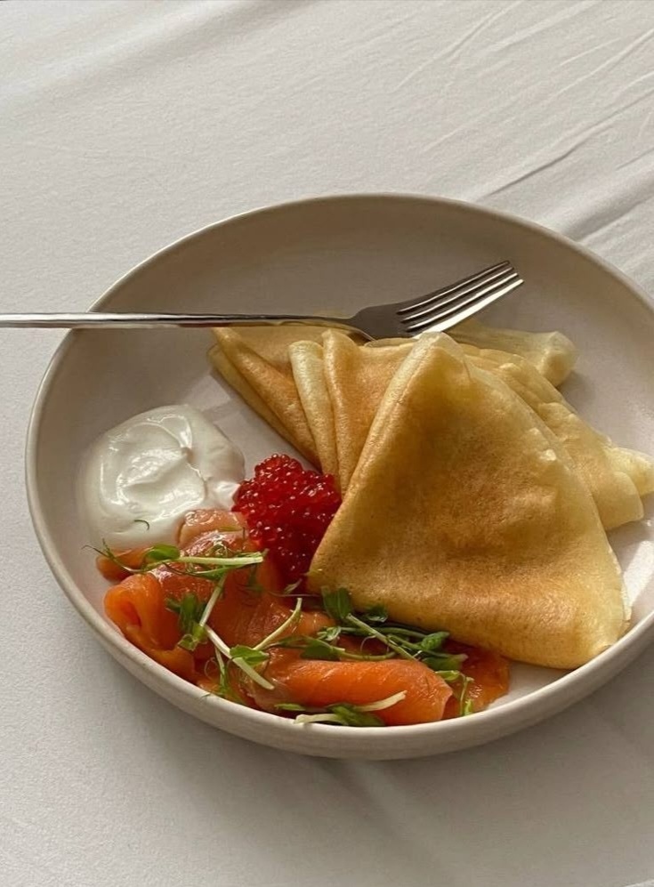 Блины — одно из самых любимых и традиционных блюд русской кухни. Они символизируют солнце, тепло и домашний уют. Блины готовят из простых ингредиентов, но их вкус и аромат покоряют сердца многих. Их можно есть с самыми разными начинками и добавками, что делает их универсальным блюдом для любого времени дня. Блины можно подавать как самостоятельное блюдо или с разнообразными начинками. Вот несколько популярных вариантов: 1. С маслом и сметаной Классический способ — смазать горячий блин сливочным маслом и добавить ложку сметаны. Просто, но вкусно! 2. С медом или вареньем Сладкоежки оценят блины с медом, ягодным вареньем или джемом. Особенно хорошо сочетаются блины с малиновым, клубничным или абрикосовым вареньем. 3. С творогом Творог с сахаром или изюмом — отличная начинка для блинов. Можно добавить немного ванилина для аромата. 4. С рыбой или икрой Для любителей соленого подойдут блины с красной или черной икрой, копченой рыбой или семгой. 5. С мясом или грибами Нач