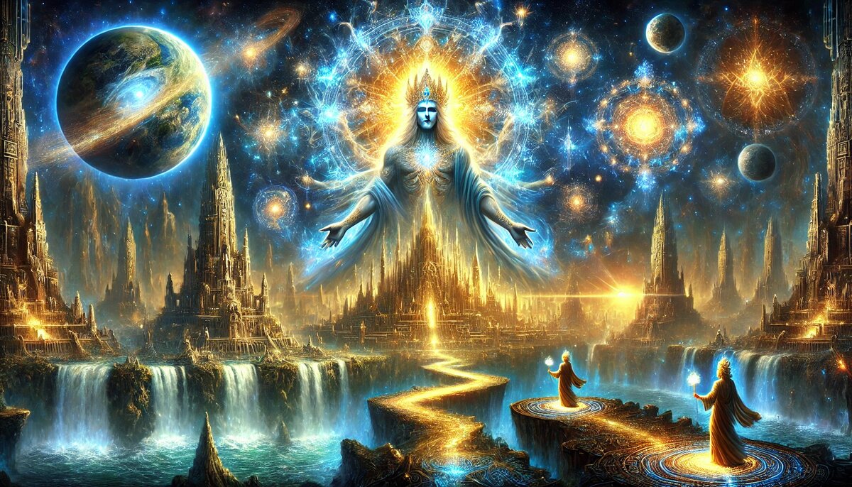 Появилась планета игры, школа мистерий, совершенный мир, сотворенный Единым, прекрасный и сияющий, и живой. Все наделено сознанием и жИвой - энергией творца: царство минералов, растительное и животное царство и подобие творца - люди…