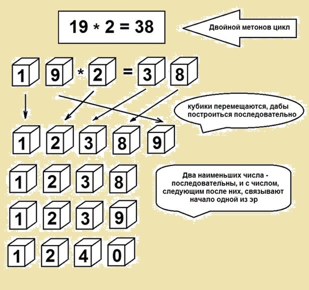 А с точки зрения календарной астрономии опорой сего достижения было равенство двойного метонова цикла 2*19 = 38. О том, как на основании этого равенства можно получить заветное число 1240, путем составления из данного равенства четырехзначных чисел и легкого воспоминания о наличии в арсенале математики такой вещи, как пирамидальные числа, мало-мальски подробно описано в регулярно упоминаемой здесь статье «Попытка разгадки тайн иудейского летосчисления. Изложение материала и результаты предварительной обработки» ([5]).