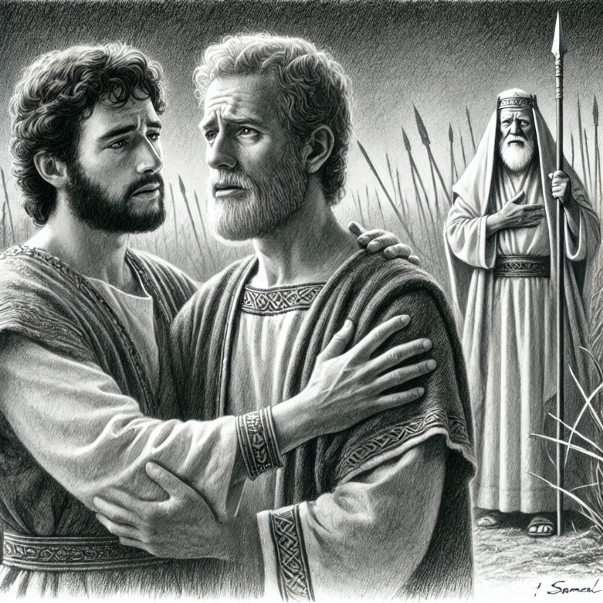 Что вы сделаете, если окажетесь между двумя сторонами конфликта, и каждая из них требует вашей лояльности? Сохранить дружбу, защитить честь семьи или сохранить свою жизнь? Это не предательство, если вы всего лишь пытаетесь найти баланс. Иногда надо выбирать меньшее зло, разве не так? В 20-й главе 1-й Книги Царств мы видим драму, полную напряжения и внутренних конфликтов. Дружба Давида и Ионафана проходит через серьёзное испытание, когда Саул, отец Ионафана, открыто желает смерти Давида. Давид понимает, что его жизнь находится под угрозой, но он не хочет слепо верить в ненависть Саула. Он обращается к своему другу Ионафану, чтобы выяснить правду: «Что я сделал? Почему твой отец хочет убить меня?» Ионафан, верный Давиду, но одновременно сын Саула, оказывается между двух огней. Чтобы выяснить намерения отца, Ионафан предлагает план. Он вызывает Давида на тайную встречу, и они договариваются о проверке. Во время праздничного пира Давид не появится, а Ионафан посмотрит на реакцию Саула. Есл