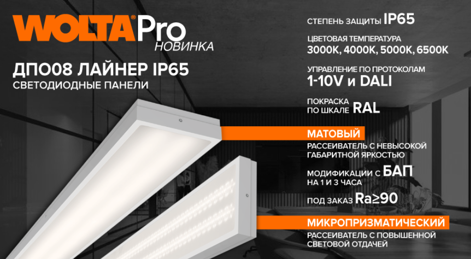 Новая линейка светодиодных панелей ДПО08 ЛАЙНЕР IP65 от Wolta