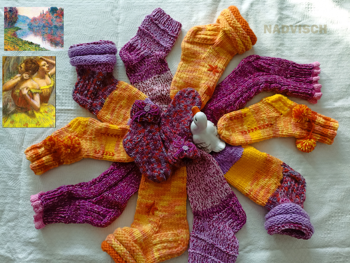 Вязаные носки, носочки. Яркие краски импрессионистов навеяли такую носочную коллекцию!