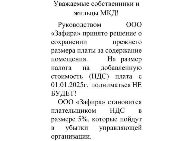 Перед новым годом в подъездах домов появилось объявление о том, что УК с 2025 года «вынуждена» поднять тариф на 5%. В компании объяснили, что у неё возникает обязательство платить НДС (налог на добавленную стоимость) как раз в размере 5%.