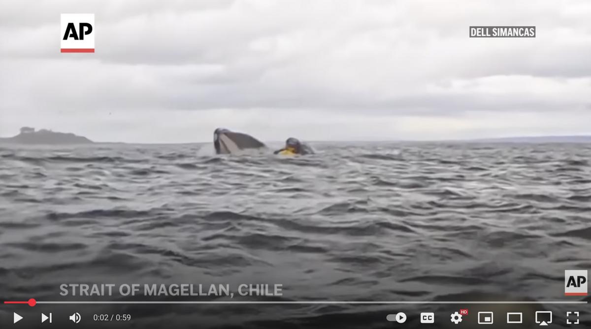 Вирусное видео показывает, как гренландский кит на мгновение прогладывает каякера