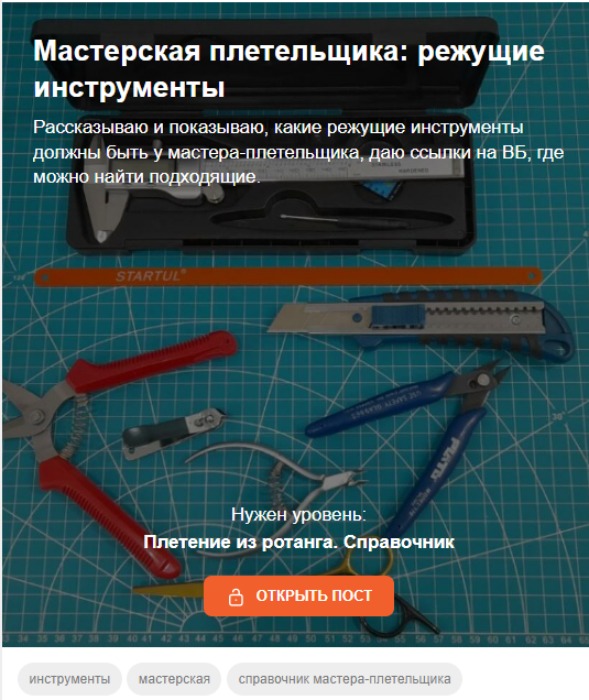 Он мне нужен, потому что хочу не просто научиться плести кашпо/корзинки и иже с ними, а хочу освоить ремесло плетения ротангом от А до Я.