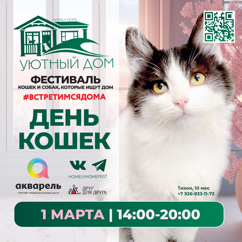 1 марта в России отмечается День кошек. Он был установлен почти 20 лет назад и постепенно оброс обзавелся собственными традициями и поклонниками. И немудрено, своим присутствием котики улучшают нашу жизнь - снимают стресс, приносят в дом спокойствие и уют. К этому празднику и приурочен Фестиваль по пристройству бездомных животных «Уютный дом», в котором мы рады вновь принять участие. Кошки, кошки, кошки!🐱🐱🐱 Черные, рыжие, белые, серые! Все такие разные! У каждой участницы и участника своя история, но все они в поисках Дома!🏠 Честь представлять ЗооДом на этот раз выпала трехцветной красотке Риане! Это не кошка, а богиня - грациозна как лань, умна, тактична и очень скромна! 👑 Познакомиться с Рианой, и не только с ней, можно в эту субботу в ТЦ «Акварель» (МО, г. Пушкино, шоссе М8 Холмогоры, 33 километр, строение 18). Мы будем недалеко от фудкорта в пространстве «Просторум» с 14 до 20 часов. 👋 Ждем всех-всех-всех! Даже если вы не готовы подарить животному дом, приезжайте просто их