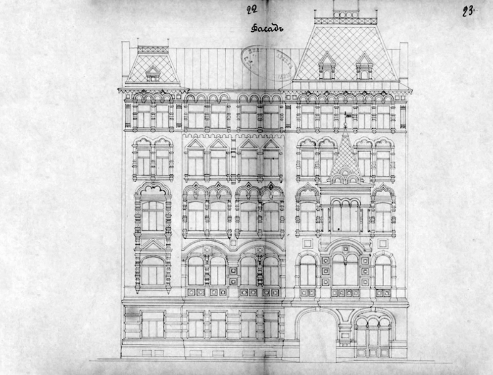 Есть в Санкт-Петербурге несколько красивых домов, глядя на которых приходит описание "Пряничный домик", обычно это яркие представители "неорусского стиля". Как пример - Дом епархиального братства церкви Покрова Пресвятой Богородицы, на Боровой улице. Другой такой находится в самом центре, на Колокольной улице дом 11, Доходный дом Никонова, приметное здание с шикарным фасадом. Это здание привлекает кинематографистов, здесь частенько снимают фильмы и сериалы. Сегодня есть возможность приобрести частичку истории, в этом доме пытаются расселить одну из множества коммунальных квартир и в продажу попали несколько комнат. Большая девятикомнатная квартира, на четвертом этаже, многие элементы которой попадают под охранную грамоту, являются объектами культурного наследия. Множество лепнины на потолках, колонны, и камины и печи. Исходя из плана, не совсем ясно какая из комнат будет дальше на снимках, но судя по двум окнам и анфиладной двери - это что-то в нижней части квартиры, с окнами на фаса
