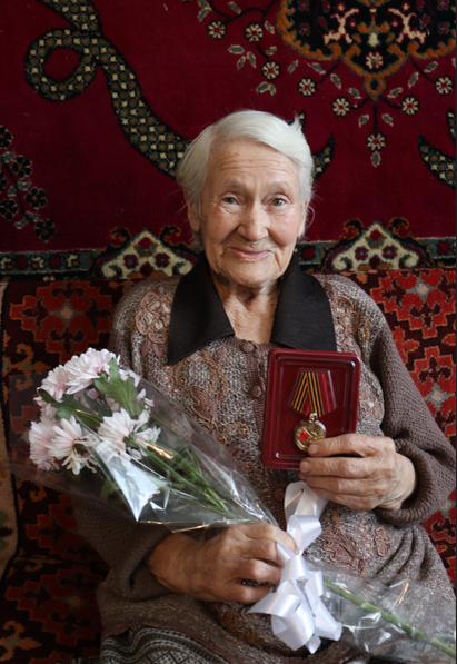 Глава Успенского сельсовета Ирина Владимировна Потеряева вручила медаль «80 лет Победы в Великой Отечественной войне 1941-1945 гг.» Анне Ива