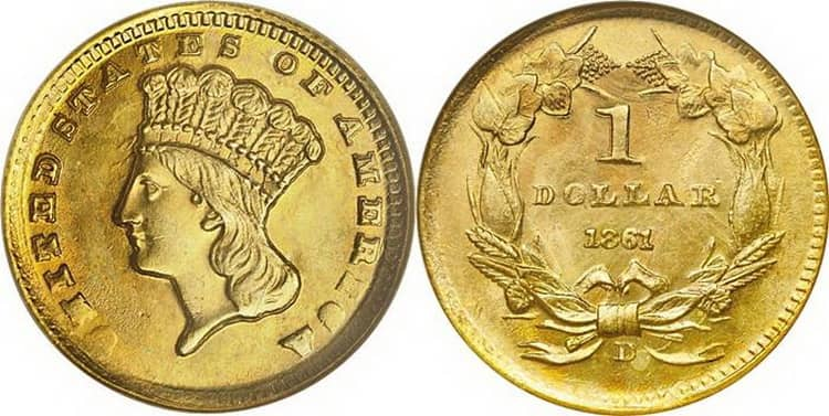Да. американцы чеканили золотой доллар, монетку диаметром 13 мм и весом 1,673 грамма с содержанием чистого золота 90% (1,5 грамма).