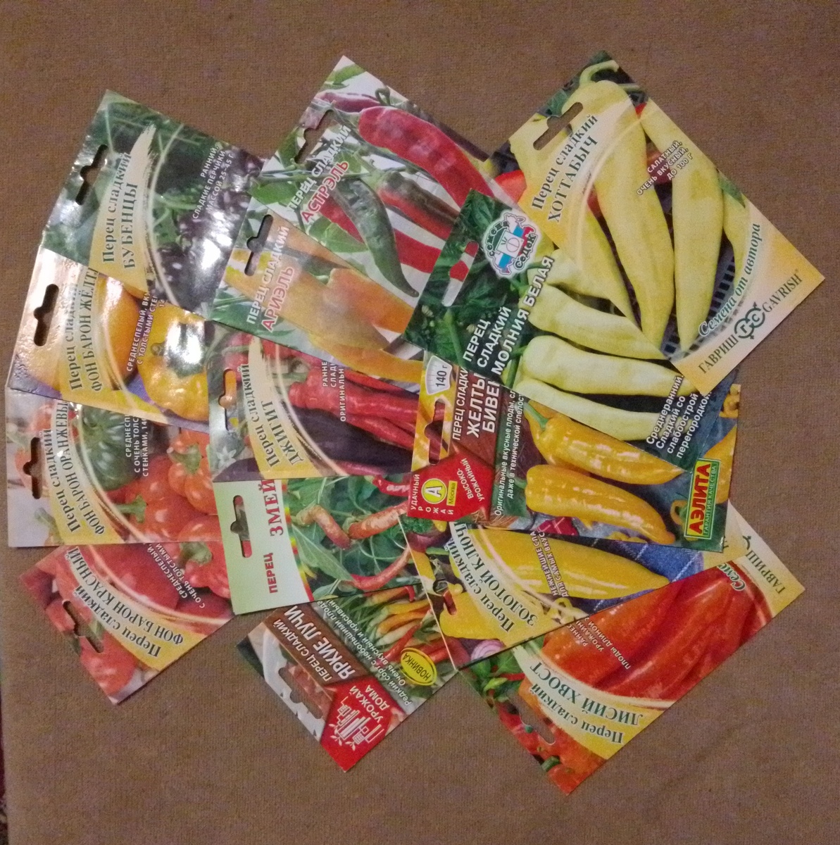 В конце января начала разбирать заветные пакетики с семенами. Прошлый сезон 2024 оказался очень удачным в плане урожая сладких перцев. Но, "пожиратели урожая" не оставили шансов собрать семена. Да что уж говорить, даже фото не сделала. Пришлось закупиться понравившимися сортами заново. Часть сортов ждала своей очереди уже давно. Итак перечень сортов: Гранд шоколад от Сибсада; Банановый десерт от Сибсада; Хобот от Сибсада; Рог от Сибсада; Золотая снежность от Сибсада; Фон барон красный, оранжевый и жёлтый от Гавриш (Давно эти перчики ждали своей очереди. В 2023 г. Фон барон красный выдал отличный урожай и плодил до самых заморозков, хорошо дозаривался (для нас это важно - едим свежие салаты до конца декабря)) Кстати,хочу отметить шикарную всхожесть: срок на пачке семян был указан до 12.2024, семена были замочены и в итоге проклюнулись 4 семечка, были посеяны все, и те, что не думали просыпаться - сейчас в плошке повыскакивали штук 16; Астрэль от Агросетомс (привлекло указание на возм