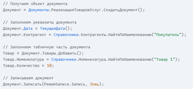 В 1С существует несколько способов программной записи документа, каждый из которых подходит для разных ситуаций. Рассмотрим подробнее каждый из них на примере 1С:Предприятие 8.