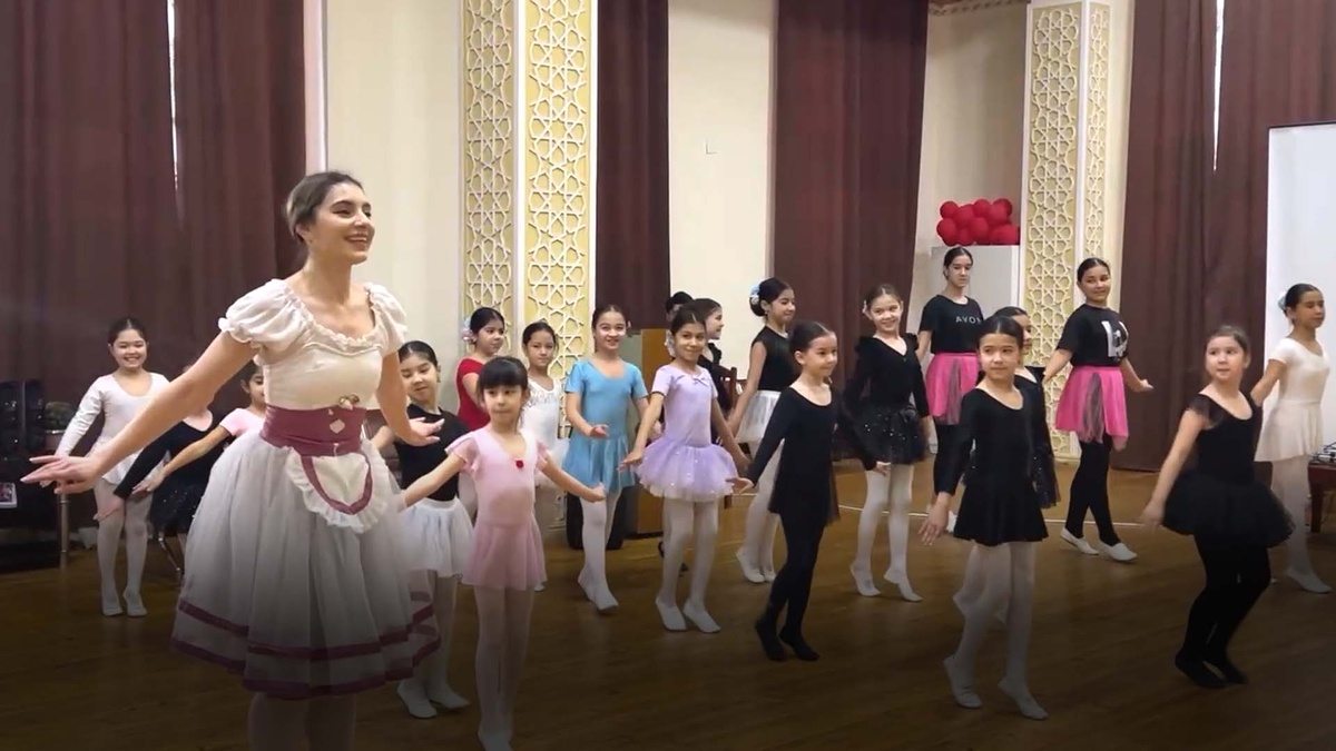 В ходе мероприятия, организованного "Русским домом" и местным управлением культуры, ведущая солистка Театра оперы и балета им. Айни Нозанин Юльчиева провела урок для балерин Согда.