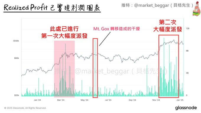 Например, г-н Беггар (@market_beggar) еще 13 января вынес предупреждение с помощью таких данных в сети, как «реализованная прибыль», тепловая карта AVIV, отклонение цены Cointime и другие индикаторы, указывающие на то, что рынок уже перегрет. Его основная идея заключается в том, что рыночные пики обычно проходят через две отдельные фазы «распределения». На каждом бычьем рынке большое количество инвесторов будет тихо накапливать фишки на низких уровнях, и распределение этих фишек является сигналом того, что бычий рынок постепенно подходит к концу. Когда рыночные настроения достигают своего пика и участники, как правило, держат фишки с более высокой стоимостью, то, как только цены больше не могут расти, постепенно начнутся продажи, что в конечном итоге приведет к падению цен и ознаменует начало медвежьего рынка.