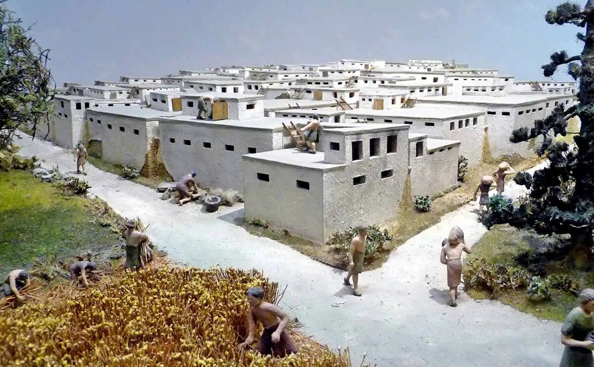Возможно, именно обилие хорошей глины и особенности климата заставили древних земледельцев объединиться в огромную по тем временам общину. Причина в том, что замечательная долина, дававшая изобильную пищу летом, зимой становилась совсем неуютной — температура там могла опуститься до минус четырех.
