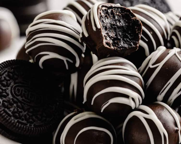 Эти трюфели "Орео" — восхитительный десерт, приготовленный из крошки одноименного печенья, творожного сыра и покрытый шоколадом. Благодаря тому, что они не требуют много времени для выпекания и состоят всего из четырёх ингредиентов, это идеальный быстрый десерт для украшения праздничных формочек с печеньем и в качестве подарков! 435 г измельченного в мелкую крошку печенья Oreo. 230 г творожного сыра комнатной температуры. 360 г шоколадной стружки. 2 столовые ложки растительного масла. Застелите противень пергаментной бумагой и отложите в сторону. В большой миске смешайте крошки печенья "Орео" и творожный сыр. С помощью ложки или лопатки аккуратно перемешайте, пока сыр не соединится с крошкой и у вас не получится мягкая однородная масса. Используя небольшую ложку для мороженого, выложите смесь на подготовленный противень. Аккуратно сформируйте каждый из них в гладкий шар и верните на противень. Поставьте противень в холодильник минимум на 30 минут или до полного застывания. В небольшой