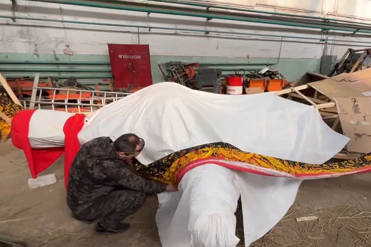 В Волгограде сотрудники МБУ «Северное» завершают работу по созданию чучела к Масленице. Как сообщает V102.RU со ссылкой на пресс-службу мэрии, части символа прощания с зимой уже почти готовы к отправке в Центральный парк культуры и отдыха. Как и в прошлом году, чучело выполнено из деревянного бруса, обшитым картоном и тканью. Внутрь каркаса после установки поместят солому, сухие опилки и еловые ветки. После полной сборки ее отправят с помощью трала на место проведения мероприятия. Для изготовления каркаса специалистам потребовалось около половины кубометра деревянного бруса, порядка 50 метров хлопчатобумажной ткани светлых цветов, из которой рабочие «сошьют» рубаху и сарафан, а на плечах и голове появится платок и кокошник. Окружность основания объекта составит не менее 12 метров. К концу рабочей недели чучело будет доставлено в парк, где уже в это воскресенье, 2 марта, его по традиции сожгут. Видео: администрация Волгограда