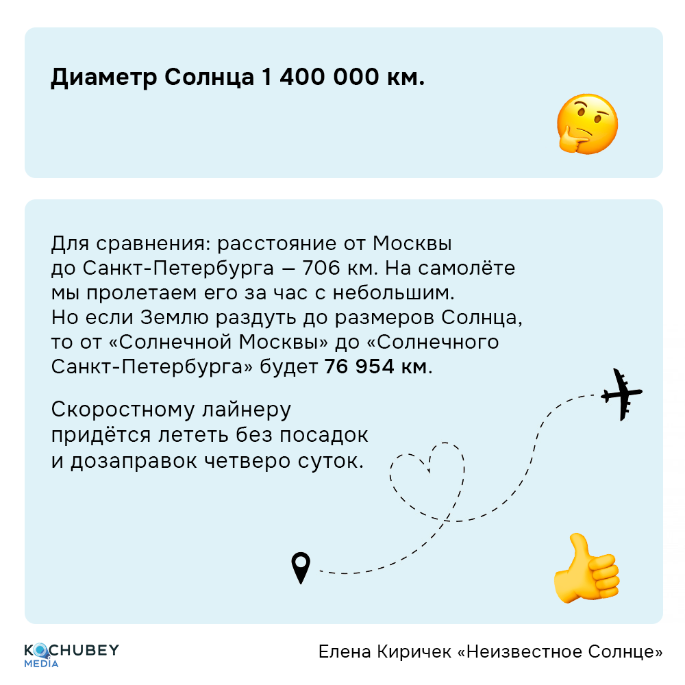 Современная музейная экспозиция должна быть многоуровневая и разнообразная. Это касается и музейных текстов. Информации вокруг сегодня очень много, поэтому если в вашем тексте встретится что-то непонятное и не вовлекающее, его просто пропустят. Но что делать, если в музее много сложных для восприятия фактов? Например, размеры и расстояния в космосе такие большие, что их бывает трудно осознать. А теперь представьте, что вы в музее космонавтики, и вся экспозиция наполнена цифрами с большим количеством нулей. В результате вы просто перестанете обращать на эти факты внимание. Тем более, что все эти цифры легко можно найти в интернете. Поэтому можно использовать метод аналогий: перевести величины в понятный и осязаемый контекст. А подсказки, как это сделать, можно найти в детских энциклопедиях и научно-популярных комиксах. Посмотрите, как это работает, на примере фактов о Солнце: