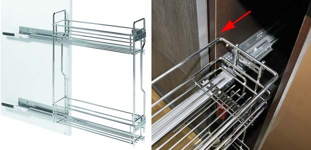 - Фурнитура крепится, когда все пыльные монтажные работы уже сделаны, за исключением узких модулей, например шкафы под бутылки или модули шириной 30см и менее, сначала устанавливают фурнитуру: направляющие, петли и ручки. После сборки корпуса это делать уже будет неудобно.