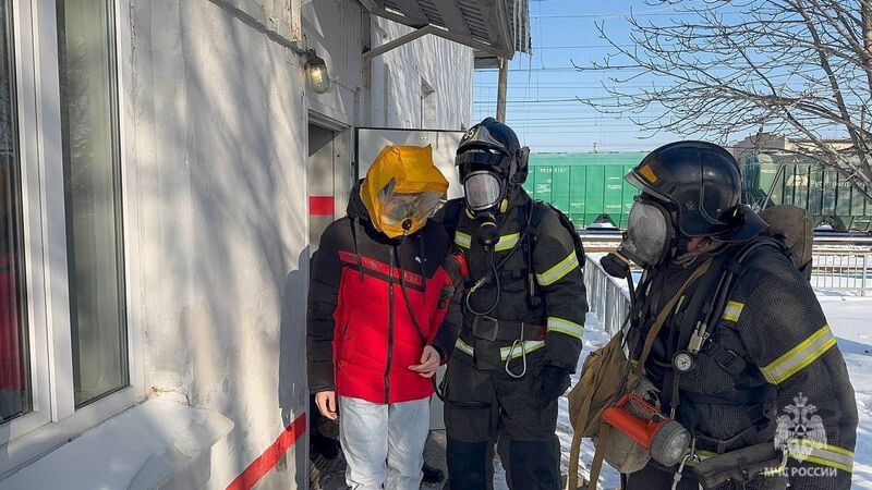 В Сызрани пожарные вывели человека из здания вокзала в маске