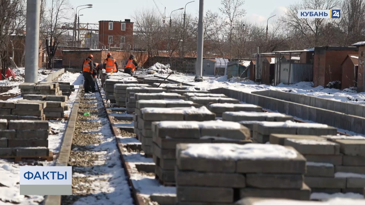 «Рабочие уже проложили 1.4 км трамвайных путей, но на этом участке полотно прерывается и упирается в здание. После того, как земля будет передана заказчику и подготовлена, работы по укладке новых путей будут возобновлены. Планируется проложить еще 9.8 км в сторону Немецкой деревни», — сообщает корреспондент телеканала «Кубань 24» Максим Шабалда.