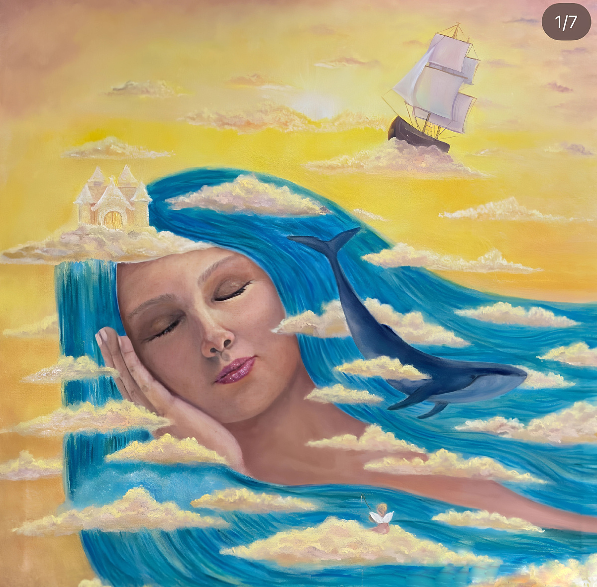 А море Не узнает обо мне... Что снится мне порой, И синий кит парит, Над облаком со мной. И с вечностью на ты Там золотой закат. А струны у воды Так ласково звучат. Белеет солнца диск, И в золотых волнах, Нам кажется святым, Корабль в его лучах. Там капитан один, Но он не одинок... С ним паруса любви И вольный ветерок. Он океану жизнь Доверил всю свою. И, не боясь, идёт, Он, к дому своему. Где сердце, там и дом! Там у души покой... И мы когда в пути, Лишь думаем о нем. Так бесконечно раз, Что помнит океан, Всегда он шёл вперёд, Сквозь бури и туман. И вот ещё чуть-чуть Осталось до утра... И тот небесный свет Открыл мои глаза. Проснусь...а море там Мурлыкает во мне, Той музыкой любви Волнами по душе. © Copyright: Марина Керде, 2019 Свидетельство о публикации №119112309789 автор картины : OJJO
