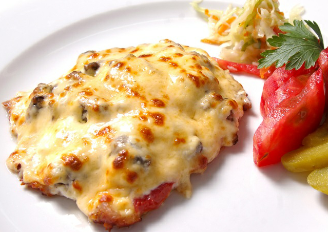 Из самых обычных продуктов можно приготовить блюдо, которое будет не только сытным и вкусным, но и очень простым в приготовлении. Мясо по-французски с картофелем — это классическое блюдо, которое можно подать как на повседневный обед, так и на праздничный ужин. Это блюдо «два в одном», ведь оно включает в себя и мясо, и гарнир. Это базовый рецепт, который можно разнообразить, добавив к нему помидоры, грибы или специи. Общее время приготовления: 1 ч. Шаг 1: Картофель (1 кг) чистим, моем и нарезаем кружочками, толщиной 3-5 мм. Шаг 2: Лук (200 г) чистим и нарезаем тонкими полукольцами или кольцами. Шаг 3: Мы промываем свинину и нарезаем её на ломтики толщиной примерно в 1 сантиметр. Затем каждый кусочек мяса отбиваем. Чтобы избежать разбрызгивания мяса и загрязнения молотка, я советую использовать пищевую плёнку или чистый полиэтиленовый пакет. Отбивать мясо можно прямо в пакете. Шаг 4: Сыр (300 г) натираем на крупной тёрке. Это был последний подготовительный этап, теперь сталось раз
