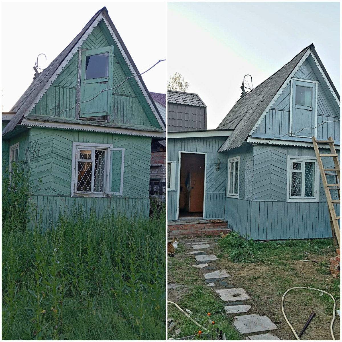 Мой отпуск тоже не прошел без глобальных свершений. В подполе была обнаружена канистра с двадцатью литрами краски, которую мы тут же пустили в дело. Пара выходных и наш маленький домик стал таким: Лестницу сделали из залежей бруса, тоже заботливо заготовленного прежним хозяином. Я иной раз удивляюсь, просто чудеса какие-то. Вот у вас бывало такое - вроде бы какая то вещь только что была на глазах, а как понадобилась - не можешь найти, как сквозь землю провалилась. А у нас на даче все ровно наоборот - не успеешь подумать о чем-то, что нужно для дела , а оно раз - и уже под рукой, буд-то кто-то подложил! Подумали, что нужен гамак - нашелся новенький на чердаке, решили домик покрасить к сезону дождей - нашлась и краска, и кисточки. И так постоянно по мелочи.Ну конечно секрет в том, что бывший владелец был человек хозяйственный и запасливый, вот все и находится. А еще был интересный момент, когда расхламляли дом, нашли письмо, в котором было обращение (как я понимаю отца бы