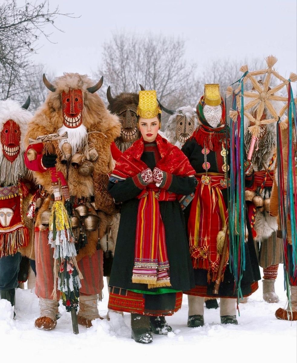 Важной частью праздника было создание зооморфных масок (козел, бык, тур, медведь), которые символизировали животворную силу и плодородие.