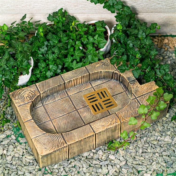 Этот поддон сочетает в себе функциональность и стиль. Он подходит для садовых умывальников и легко вписывается в ландшафтный дизайн.