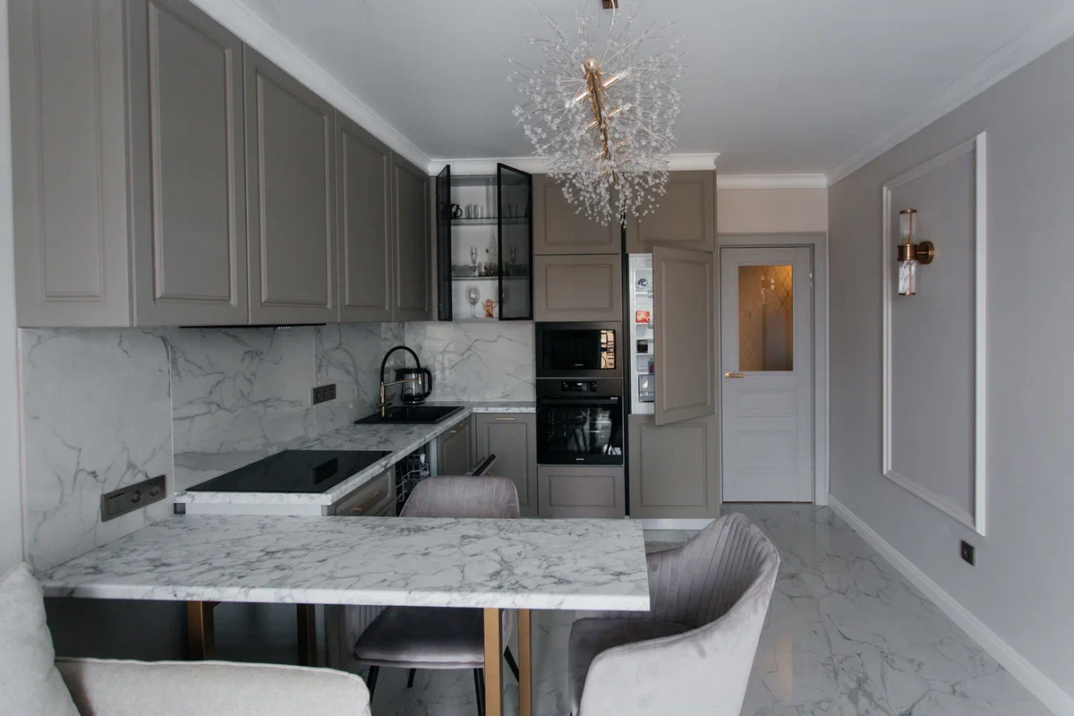 Практически всю технику на кухне устанавливают один раз и до следующего ремонта. Как грустно будет осознать, что вам неудобно пользоваться холодильником, или духовкой, или посудомойкой, когда уже нельзя ничего исправить. Чтобы не терпеть неудобства много лет, расскажем о возможных ошибках заранее. Здесь может возникнуть сразу две проблемы. В крайнем случае лучше уж вынести в коридор шкаф для хранения, который вы будете открывать не каждый день. Но при грамотной планировке разместить холодильник можно даже на 5-6 квадратных метрах. Мы не устанем повторять: посудомоечная машина в проекте только рядом с мойкой. Нет никаких весомых аргументов сделать иначе. Во-первых, будет гораздо легче подключить устройство рядом с мокрой зоной. А во-вторых, нет ничего удобнее перекладывать грязную посуду, стоя на одном месте. Только представьте, если до посудомойки надо будет идти. Носить по 2-3 тарелки/кружки за раз, с них будет капать на пол, потом ещё это вытирать. Зачем так сложно? «Что она делает в