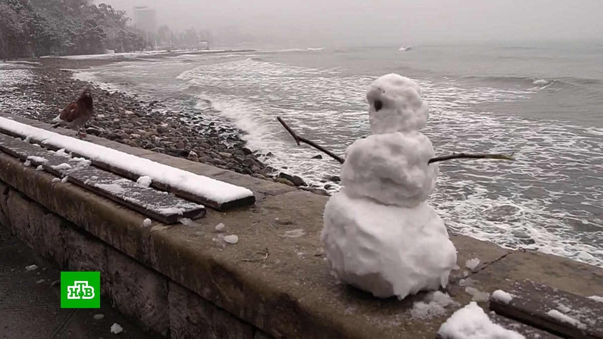 [ Смотреть видео на сайте НТВ ] Штормовое предупреждение объявлено сегодня в Краснодарском крае. Там ожидают четырехбалльный шторм, сход лавин и мощный снегопад. Уходящая зима испытывает регион на прочность с выходных. В некоторых районах зафиксированы аномальные 20-градусные морозы. Синоптики прогнозируют, что сибирские пейзажи сохранятся на Кубани до середины недели. Но некоторые жители такой погоде даже рады. Со снегопадом на юге боролись изо всех сил. Для побережья такая погода — настоящее испытание, особенно для автолюбителей. В горах на серпантине очень скользко, некоторые участки трассы занесло настолько, что пришлось перекрывать движение. В связи с погодой из аэропорта в Сочи прибывающие рейсы перенаправляют на другие аэродромы, вылеты задерживаются. Все сидячие места в зале ожиданий становятся спальными. На набережной Новороссийска из-за ветра и осадков появились ледяные скульптуры, в бухте сначала накренилось, а затем затонуло научно-исследовательское судно. К счастью, экипаж