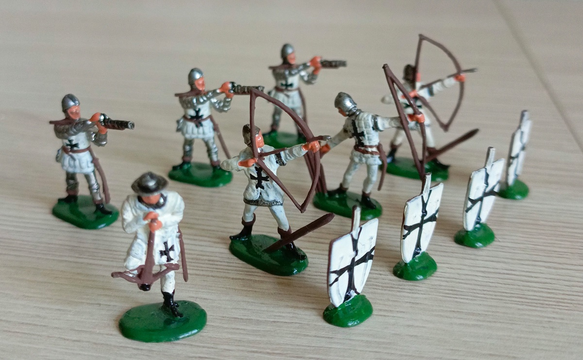 Ave любители солдатиков! Вот и совсем незаметно, вышел уже десятый выпуск нашей, как оказалось интересной для читателей ;) рубрики, в которой коллекционеры показывают как свои любопытные экспонаты, так и совсем свежие обновления-пополнения... Сегодня предлагаем посмотреть на продолжение показа коллекции Игоря Ивкина. Любуемся этими отрядами! "Продолжение раскрашенного олова. Теперь 1/72. К сожалению - жалкие ошмётки, когда-то грандиозной коллекции :(" Парни, которые стреляют... Художник попытался изобразить тевтонцев. Но почему опять у креста "ласточкин хвост"?!!! копейщики-алебардисты и боец с порванным боевым знаменем. бойцы-тевтонцы Отряд непонятной принадлежности, но скорее всего французы. Те очень любили красно-синюю расцветку в гербах. Жуткое "попугайство" рыцарей-индивидуалистов. Несколько конных рыцарей. К сожалению у некоторых утеряны копья. И как же рыцари без замков? Грандиозное сооружение, у которого за 30 лет нещадной эксплуатации несколько обветшал внешний вид. Продавец у