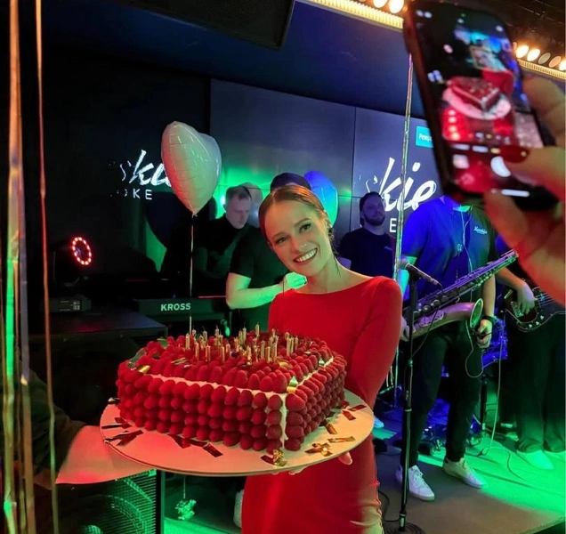 В этом году звезда сериала «Гусар» Екатерина Ковальчук отметила день рождения с особым размахом. Свои 32 года актриса встретила в столичном караоке-клубе в окружении родных, друзей и коллег, среди которых был и ее 43-летний супруг Гарик Харламов. На мероприятии он был не только гостем, но и ведущим. На праздничной вечеринке комик появился в спортивном костюме и белой футболке. На голове у комика была неизменная бейсболка.