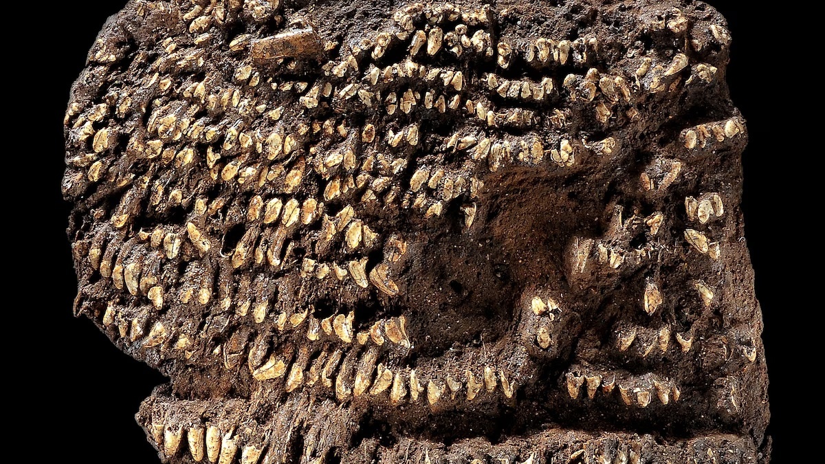 Археологи нашли её в Германии, недалеко от Лейпцига, про обследовании участка, где предполагалось создать открытый угольный карьер. Дело было в 2015 году. В ходе раскопок нашли поселения каменного и бронзового веков, в том числе более 300 захоронений, сотни орудий из камня, наконечников копий, керамических сосудов, костяных пуговиц, изделий из янтаря. Неподалёку раскопали могилу женщины, погребенной вместе с полкило золотых украшений. Но стильная сумочка каменного века — это что-то особенное. Обнаружена она в погребении, датируемом 2500–2200 гг. до нашей эры. По словам археолога Сюзанны Фридерих, зубы, скорее всего, служили украшением для внешнего клапана сумочки. «С течением лет кожа или ткань исчезли, и все, что осталось, — это зубы. Они все ориентированы в одном направлении, и это очень похоже на современную дамскую сумку», — говорит учёная. Специалисты отмечают, что зубы собак — частая находка в захоронениях каменного века Северной и Центральной Европы. Это значит, что собак исполь