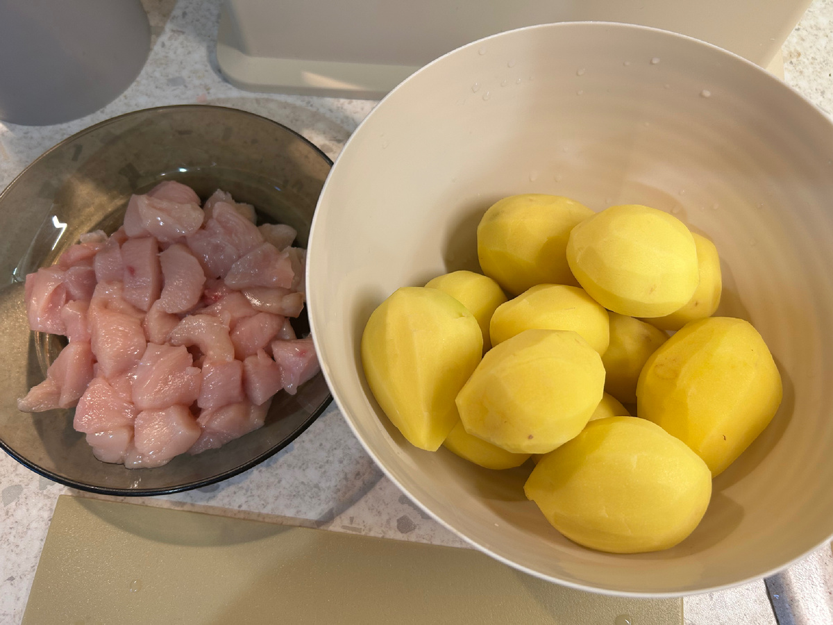 Иногда хочется чего-то эдакого, именно в этот момент приходит идея приготовить Азу по-татарски. Очень сытное и вкусное блюдо получается. Для начала почистим картошку и порежем куриное филе (можно заменить любым мясом). Филе я порезала кубиками, но можно и соломкой. Картошку порезала тонкой соломкой, чтобы было проще жарить. Так она получается мягкой внутри, а сверху небольшая хрустящая корочка. Следом также соломкой порезала солёные огурцы. Желательно, чтобы все ингредиенты были примерно одинаковые по толщине. Только курица у меня немного выделяется, но она готовится быстро, поэтому этим правилом тут можно пренебречь. Далее на хорошо разогретой сковороде и щедро политой маслом обжариваю картофель до готовности. Главное сильно её не пережаривать, тогда она будет иметь не очень приятный привкус. На фото она ещё в процессе готовки, в конце будет немного золотистее. На этой же сковороде после картошки обжариваю мясо. На большом огне и максимально быстро, чтобы курица не дала сок и