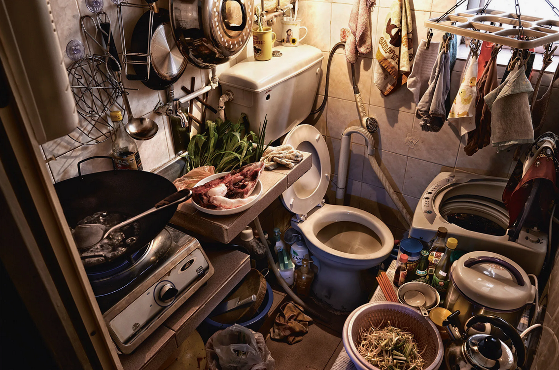 Да и не только в Гонконге можно увидеть вопиющее безобразие. Какая кухня, о чем вы? Если в такой «квартире» на десятке метров надо ухитриться разместить спальное место, ванную, туалет и остальных членов семьи, включая ребенка. Тут не до изысканных стилевых решений. Просто посмотрите на эти фото и поймете, что я имею в виду.