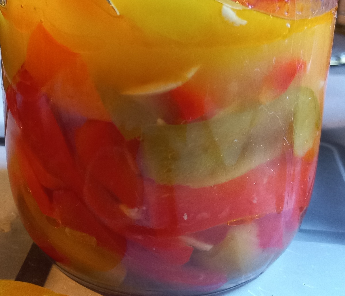 Такой перец из заготовки можно порезать помельче и добавить и в борщ, и в подливку, и в тушеную картошку, и в гречку по-купечески. Да куда угодно. Можно съесть просто так, в виде салатика.